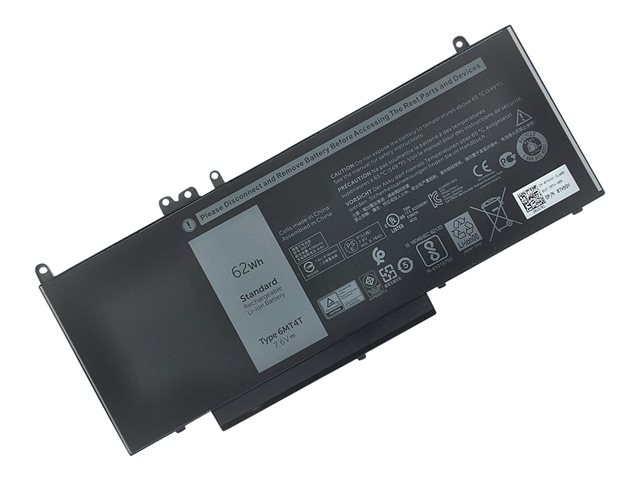Description du produit DLH - batterie de portable - Li-pol - 8150 mAh - 62 Wh Type de périphérique Batterie de portable Batterie Standard - lithium-polymère 6 cellules - 8150 mAh - 62 Wh Equivalent de batterie de fabricant de systèmes Dell 6MT4T, Dell 7V69Y, Dell TXF9M, Dell 79VRK Couleur Noir Garantie du fabricant 1 an de garantie Conçu pour Dell Latitude E5270 (M.2), E5470, E5570; Precision Mobile Workstation 3510 -