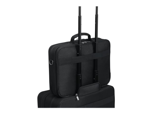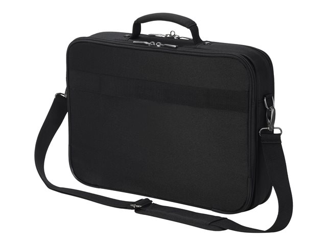 Le compartiment principal refermable à clapet protège votre ordinateur portable de 14 à 15,6" avec un rembourrage complet en mousse haute densité (HDF) et Nylex souple, à un cadre renforcé de métal et à une fixation fiable avec une sangle. Votre tablette jusqu'à 10,5" est également casée en toute sécurité dans sa poche spéciale rembourrée. La poche avant spacieuse permet de mettre de l'ordre avec son compartimentage fonctionnel pour smartphone, batterie externe, stylos et autres accessoires. Un compartiment supplémentaire zippé sur la partie inférieure avant du sac permet de ranger le chargeur et les câbles. La poignée de forme ergonomique et rivetée, une sangle avec renfort rembourré aux épaules réglable en longueur ainsi que la lanière de fixation trolley au dos permettent une utilisation flexible et garantissent un transport confortable.