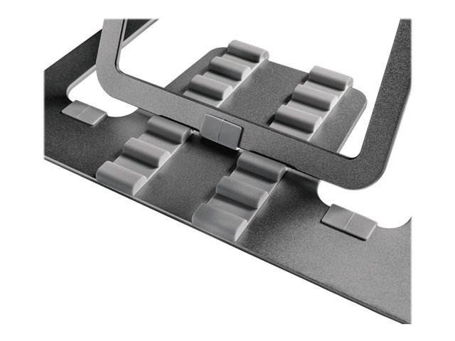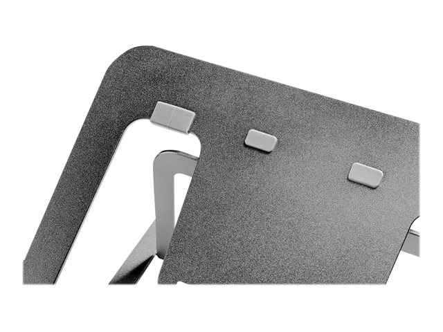 La conception légère et compacte rend le support idéal pour l'emporter partout où vous le souhaitez. La configuration ouverte assure une bonne ventilation de l'ordinateur portable et les patins en silicone antidérapants ainsi que la butée de rebord de sécurité assurent un positionnement solide.