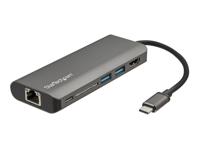 Cet adaptateur multiport USB-C avec HDMI transforme votre MacBook Pro, Dell XPS ou tout autre ordinateur portable USB-C en station de travail multifonctionnel, n'importe où vous allez. L'adaptateur multiport USB Type-C offre une sortie vidéo HDMI 4K, un port USB Type-C (données/alimentation), deux ports USB 3.0 Type-A, un port Gigabit Ethernet et un lecteur de carte SD, le tout via une connexion unique au port USB-C ou Thunderbolt 3 de votre ordinateur portable. En outre, il offre une charge optimisée grâce à USB Power Delivery 3.0.