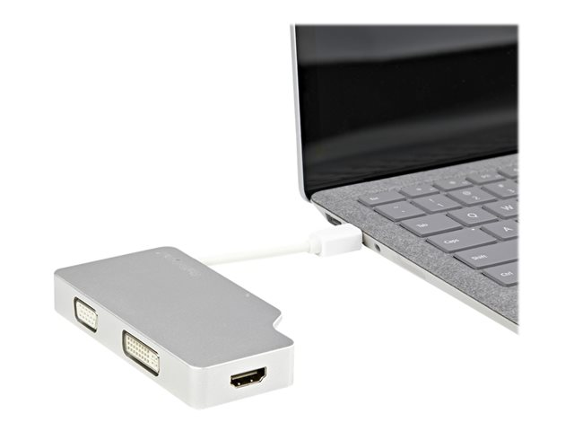 Compact, léger et prenant en charge plusieurs sorties vidéo, cet adaptateur constitue la solution plug-and-play idéale pour les applications de bureau BYOD (Apportez votre propre appareil) ou de voyage.