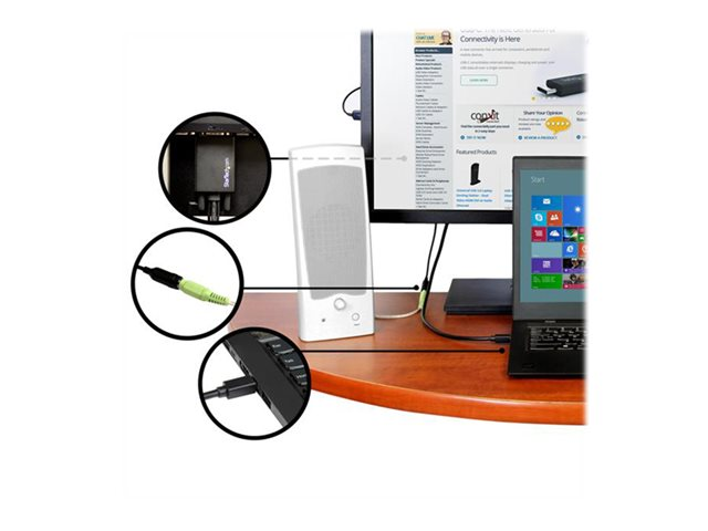 Fini les câbles enchevêtrés ! Grâce au port audio intégré, plus besoin d''installer un câble audio distinct entre votre écran ou vos haut-parleurs et votre ordinateur portable ou de bureau. Il suffit désormais de brancher le câble audio entre les haut-parleurs et le câble adaptateur. Voilà une solution simple et nette !