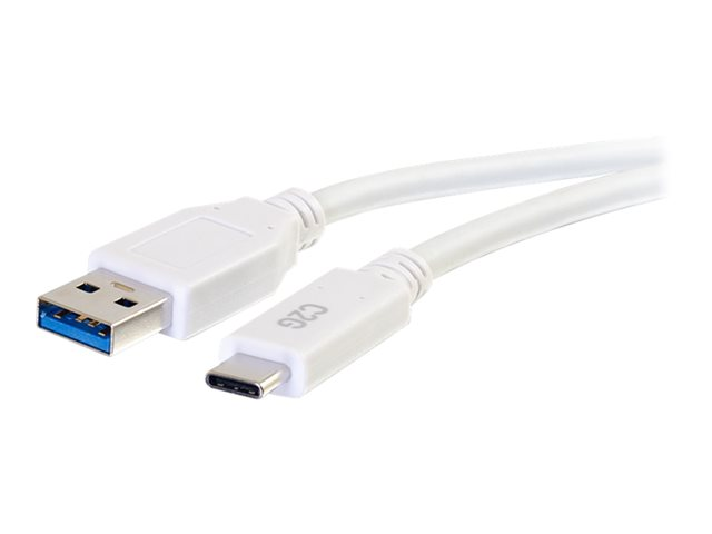 USB C to USB A - M/M - Câble USB - USB type A (M) pour 24 pin USB-C (M) - USB 3.1 - 30 V - 3 A - 3.05 cm - blanc