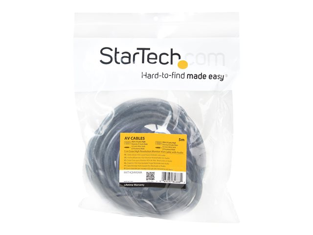 StarTech.com Câble vidéo coaxial pour écran VGA haute résolution 5 m avec audio HD15 M/M