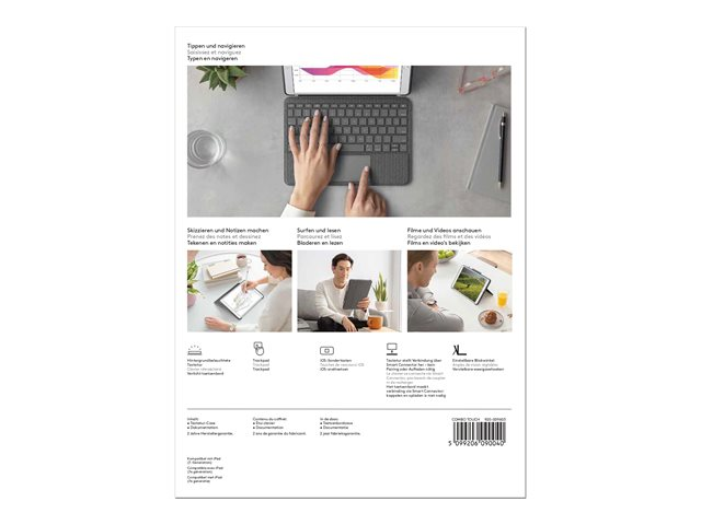 Découvrez l'étui clavier qui repousse les limites de la polyvalence et de la protection. Saisissez, visualisez, dessinez et lisez avec Combo Touch et iPad. Le grand pavé tactile et le clavier de type ordinateur portable vous permettent de travailler et de créer sans effort. Ses limites? Il n'y en a aucune.