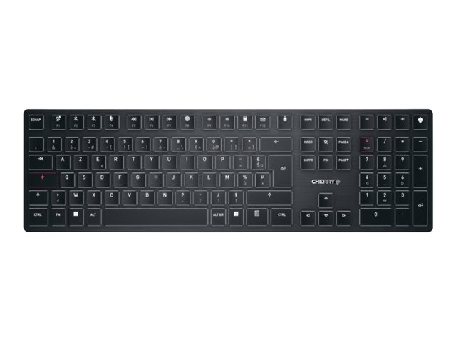 rétro-éclairé - sans fil - USB, 2.4 GHz, Bluetooth 5.2 - Français - commutateur : profil ultra bas CHERRY MX - noir - emballage sans plastique