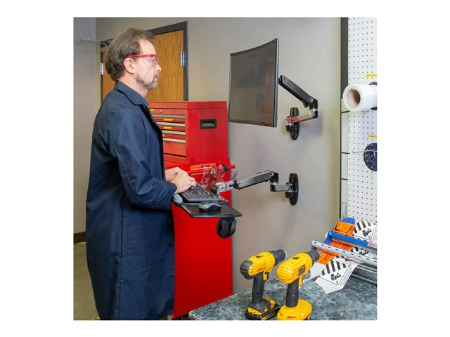 Construction robuste en aluminium poli! Le bras LX pour clavier est un support mural permettant le réglage en hauteur et l'orientation du clavier. Il permet de positionner le clavier dans la position de travail la plus confortable, en posture assise ou debout. Caractéristique très appréciée pour les environnements restreints ou encombrés, le clavier peut être replié à moins de 12 cm du mur. Combiné au bras LX pour écran plat, il crée un poste de travail informatique compact et complet.