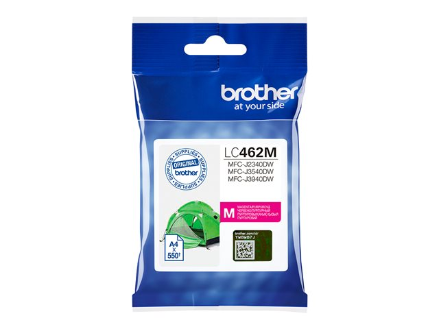 Description du produit Brother LC462M - magenta - original - cartouche d'encre Type de Produit Cartouche d'encre Technologie d'impression Jet d'encre Couleur d'impression Magenta Rendement Jusqu'à 550 pages ISO/IEC 24711 Compatible avec Brother MFC-J2340DW, MFC-J3540DW, MFC-J3940DW -