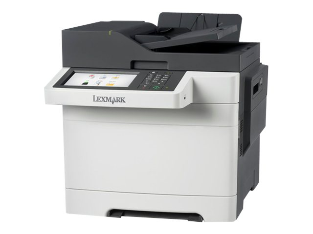 Le multifonction Lexmark CX510de apporte aux groupes de travail de taille moyenne une impression couleur remarquable, des solutions de productivité, la sécurité et un grand écran tactile couleur de 17,8 cm (7,0 pouces). Il assure une vitesse d'impression élevée de 30 ppm, un temps de sortie de la première page de 11,5 secondes seulement et une alimentation standard de 250 feuilles. L'impression respectueuse de l'environnement économise le papier et l'énergie grâce à l'impression recto verso, au mode Eco et au mode Silence. Depuis l'écran tactile, vous imprimez, numérisez, copiez, télécopiez et menez facilement à leur terme des solutions de flux de travail complètes. Une interface USB Direct permet d'imprimer des fichiers d'image directement à partir de l'appareil tandis que le scanner à plat au format Lettre se prête à la numérisation d'un large éventail de documents grâce notamment à son dispositif d'alimentation automatique de 50 feuilles.