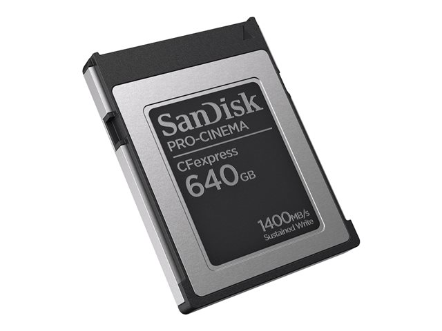 Description du produit SanDisk PRO-CINEMA - carte mémoire flash - 640 Go - CFexpress de type B Type du Produit Carte mémoire flash Format Carte CFexpress de type B Capacité de stockage 640 Go Garantie du fabricant Garantie limitée à vie -