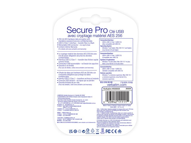 Au fil du temps, les dispositifs USB se sont mués en supports de stockage très pratiques. Cette évolution présente toutefois des effets pervers. Ainsi, la simple perte ou le vol d'une clé USB peut avoir des conséquences désastreuses, mettant aux mains de personnes malintentionnées des données financières ou des notes confidentielles. La clé USB Store 'n' Go Secure de Verbatim s'accompagne de la technologie de cryptage matériel Premium AES et d'une protection par mot de passe intégrée, ce qui permet de stocker et de transporter des données confidentielles, tout en les préservant des pertes et du piratage.