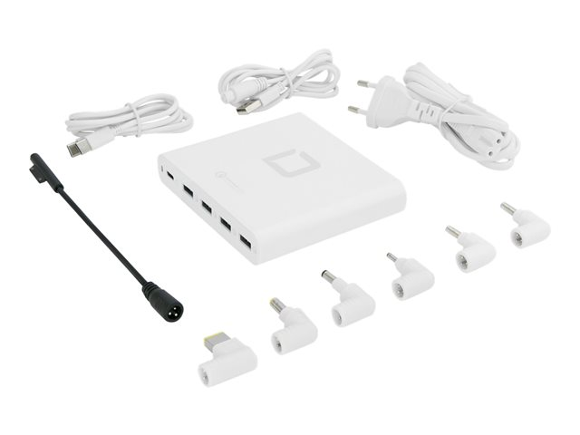 Profitez de la mobilité pure avec l'Universal Notebook Charger USB-C de DICOTA et bénéficiez à tout moment d'une alimentation correcte en énergie. Les 4 ports USB de type A et le port USB de type C avec Power Delivery 2.0 vous permettent de charger simultanément jusqu'à 5 appareils mobiles à l'aide d'un seul câble: ordinateurs portables, tablettes, smartphones ou autres accessoires.