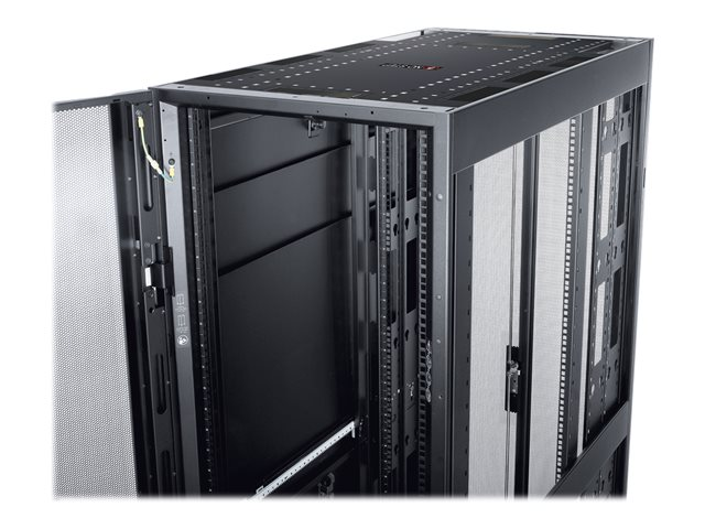 Armoires informatiques riches en fonctionnalités optimisées pour l'architecture en rangées InfraStruxure, la gestion des câbles, la distribution d'alimentation ainsi qu'une circulation d'air optimale.