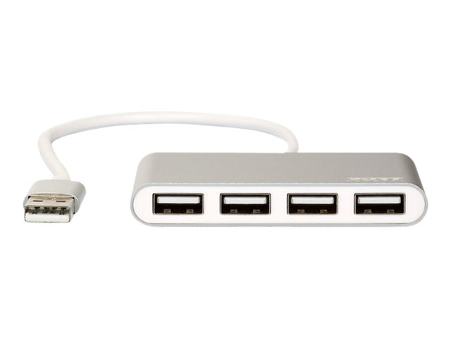 Description du produit PORT Connect - concentrateur (hub) - 4 ports Type de périphérique Concentrateur (hub) - 4 ports Sous-type USB Ports 4 x USB 2.0 Performances Taux de transfert de données: 480 Mbps Normes de conformité USB 1.1, USB 2.0 Dimensions (LxPxH) 7.7 cm x 4.3 cm x 1.2 cm Poids 54 g Couleur Gris Configuration requise Apple MacOS, Linux, Microsoft Windows Garantie du fabricant Garantie de 2 ans -