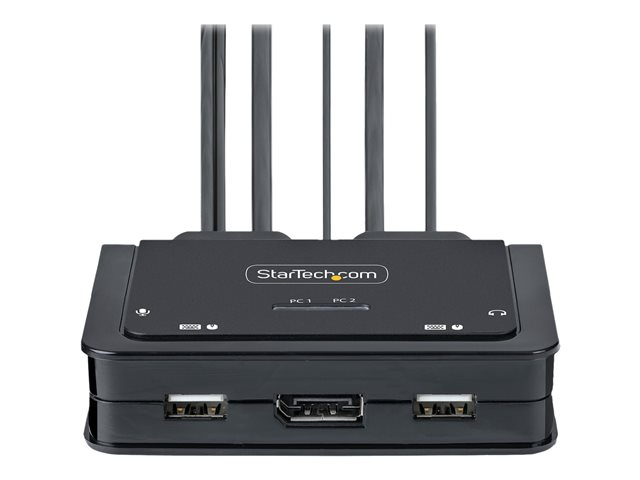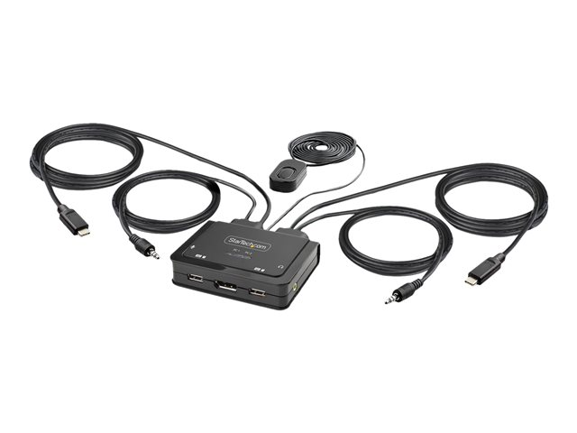 StarTech.com 2-Port USB-C Cable KVM Switch, 4K 60Hz DisplayPort Output, Compact KVM with 4ft/1.2m USB Type-C/Audio Integrated Cables, Bus Powered